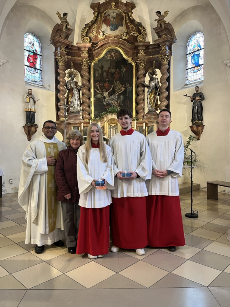 Die Ministranten übernehmen den liturgischen Dienst und sind im aktiven Leben der Pfarrei unverzichtbar. Wir freuen uns über jede neu hinzugekommene Ministrantin und jeden neuen Ministrant.