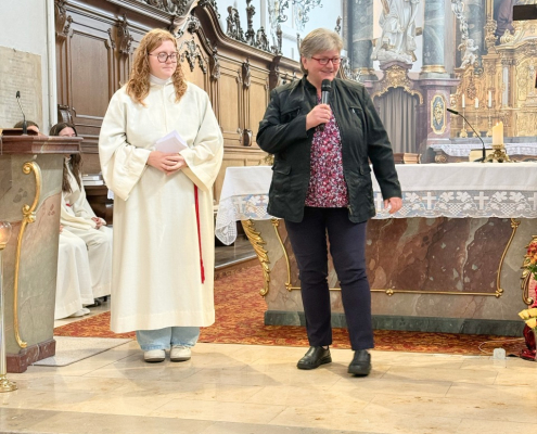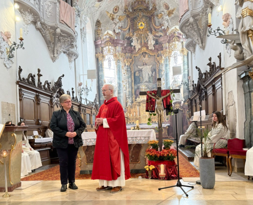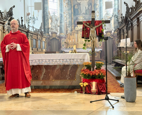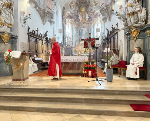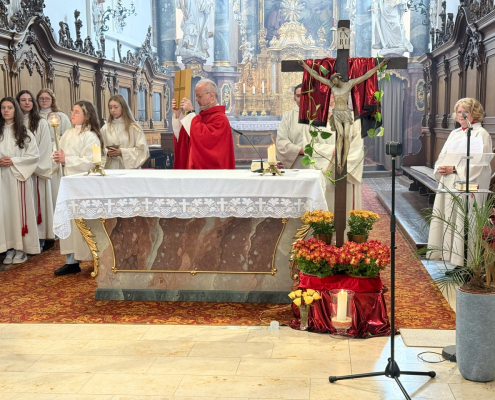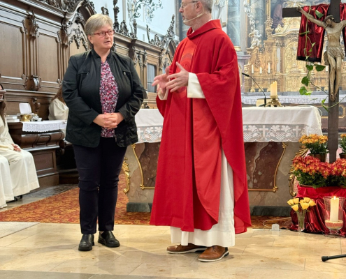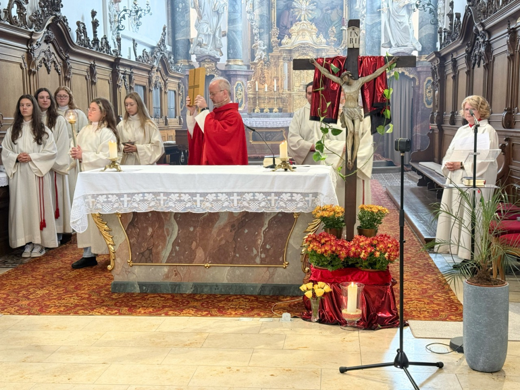 Heute am Fest der Kreuzerhöhung durften wir im Rahmen des Sonntagsgottesdienstes unsere neue Gemeindereferentin Michaela Probst willkommen heißen. Pater Bartsch brachte bereits zu Beginn des Gottesdienstes seine Freude zum Ausdruck, dass wir das Fest der Kreuzerhöhung gleich zusammen mit Frau Probst feiern dürfen.