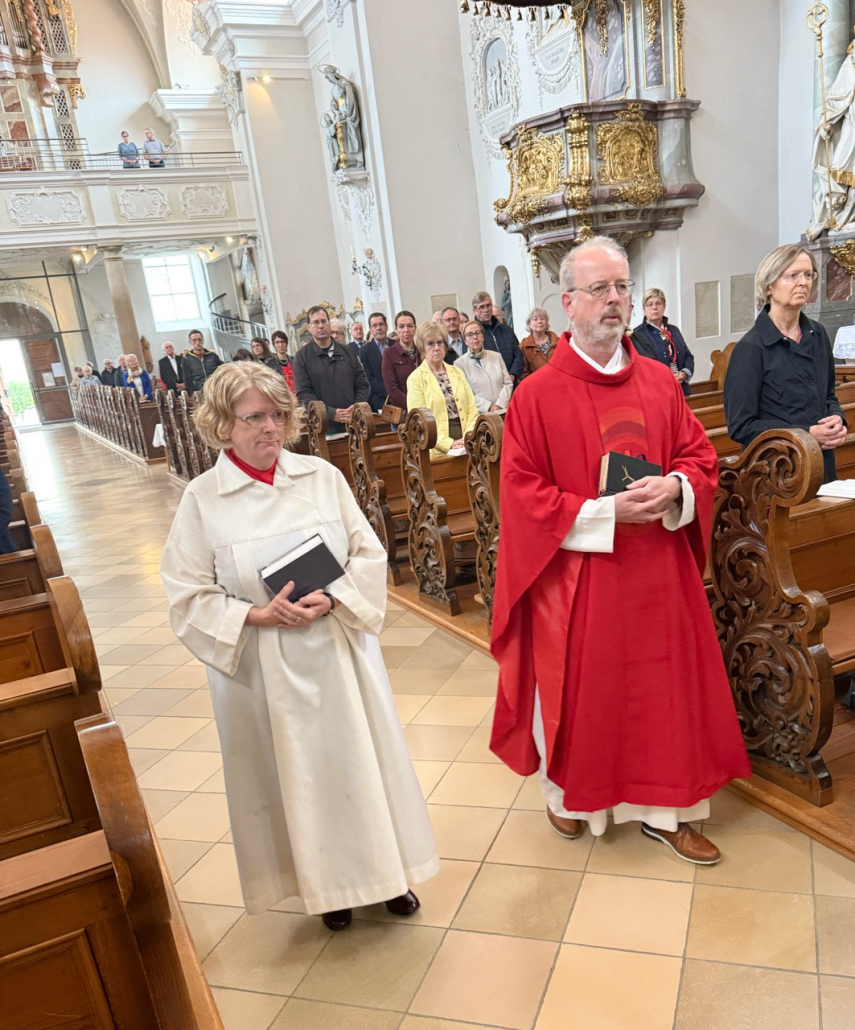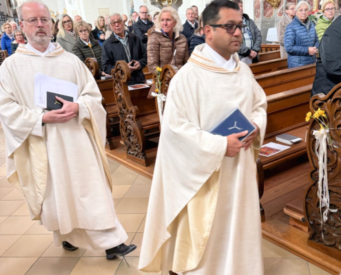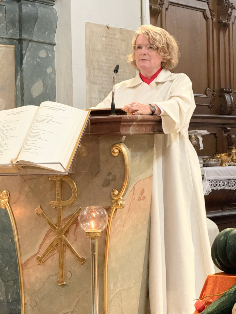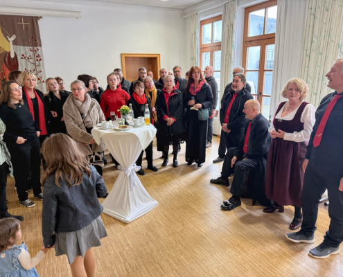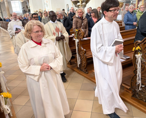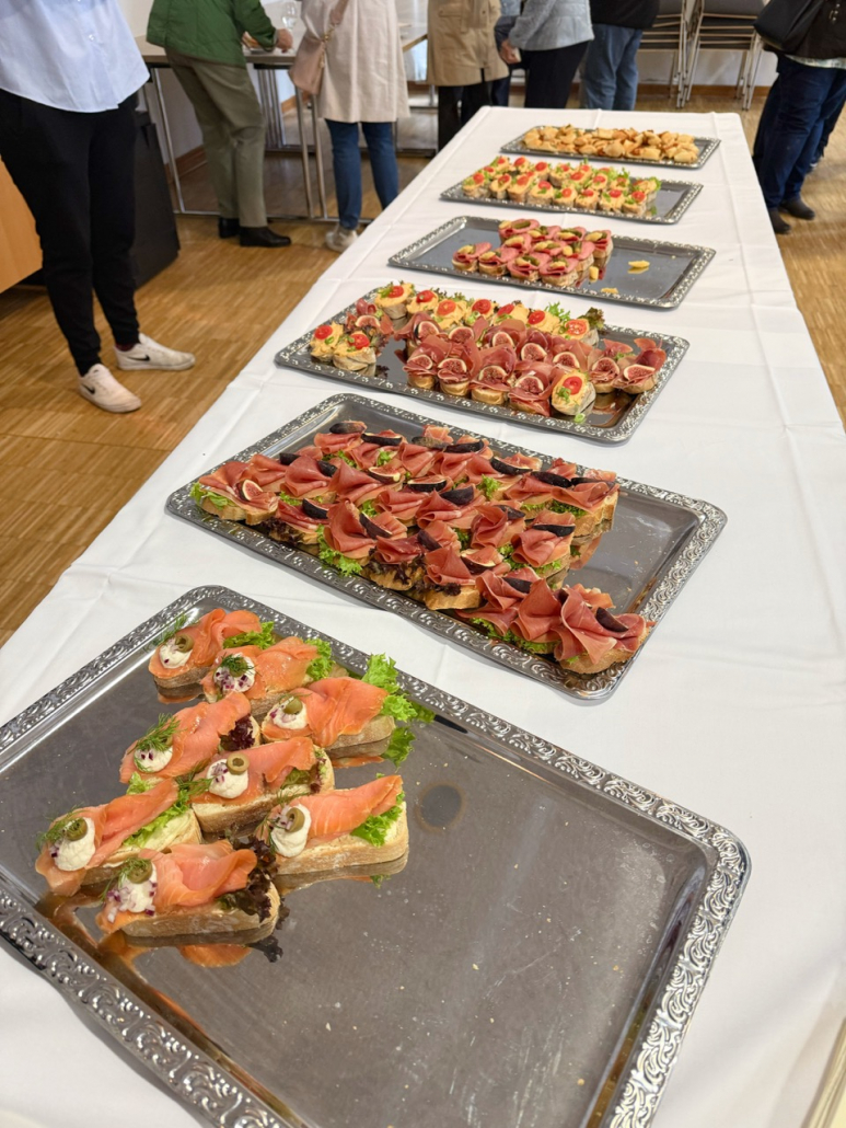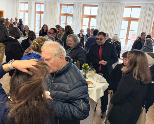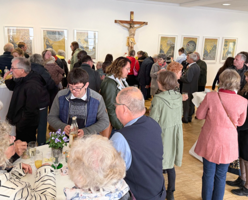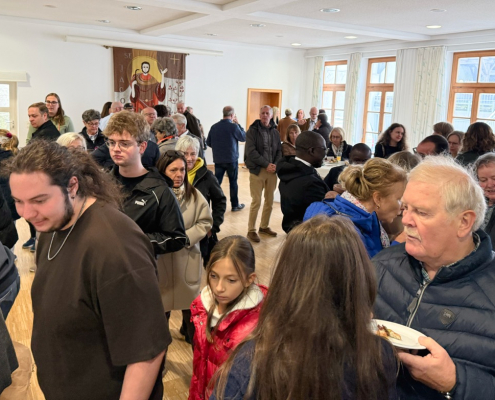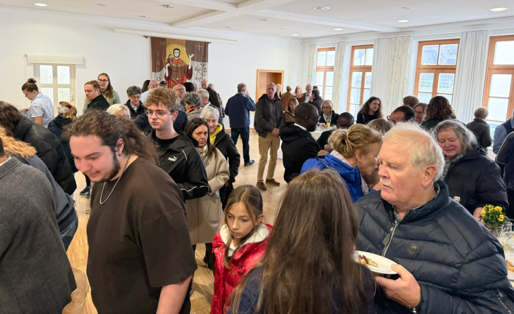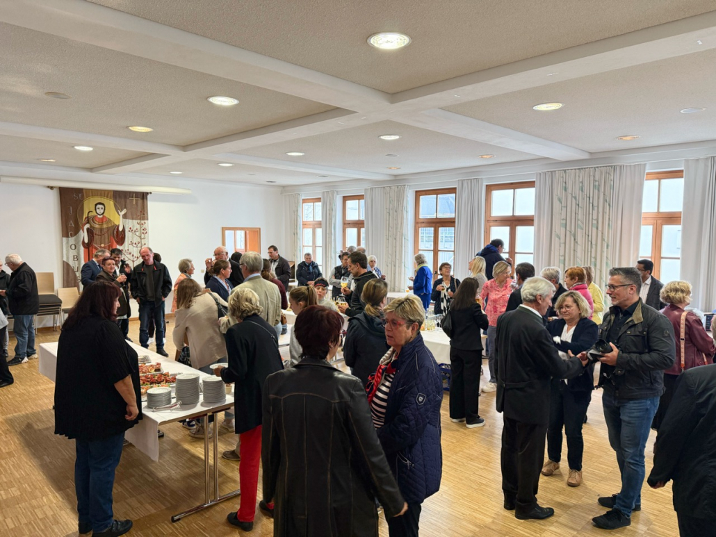 Nach dem Gottesdienst lud die Pfarrei alle Besucherinnen und Besucher des Gottesdienstes zu einem Stehempfang in den nahe gelegenen Pfarrsaal ein. Bei Häppchen und frischen Getränken war ausreichend Gelegenheit untereinander und mit Frau Probst ins Gespräch zu kommen.