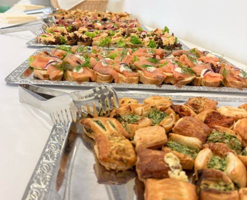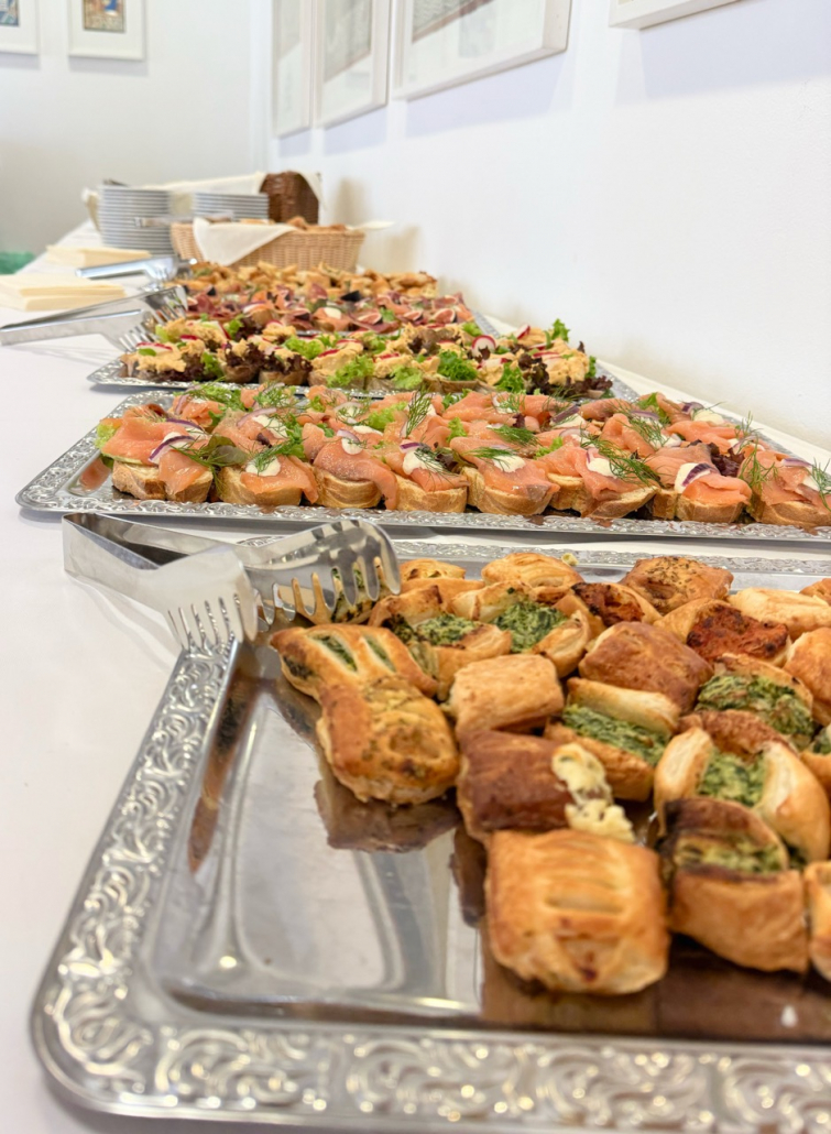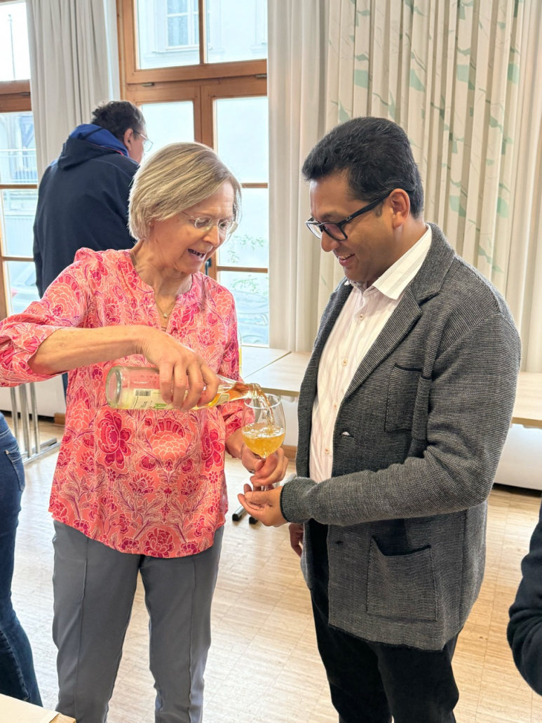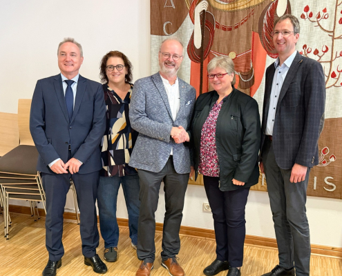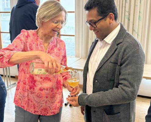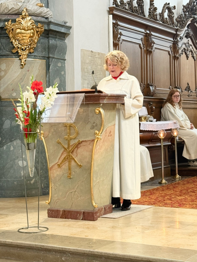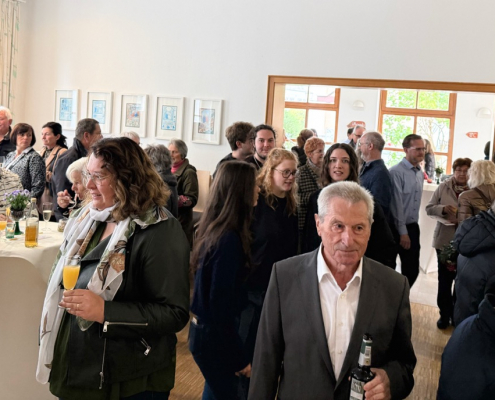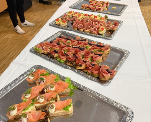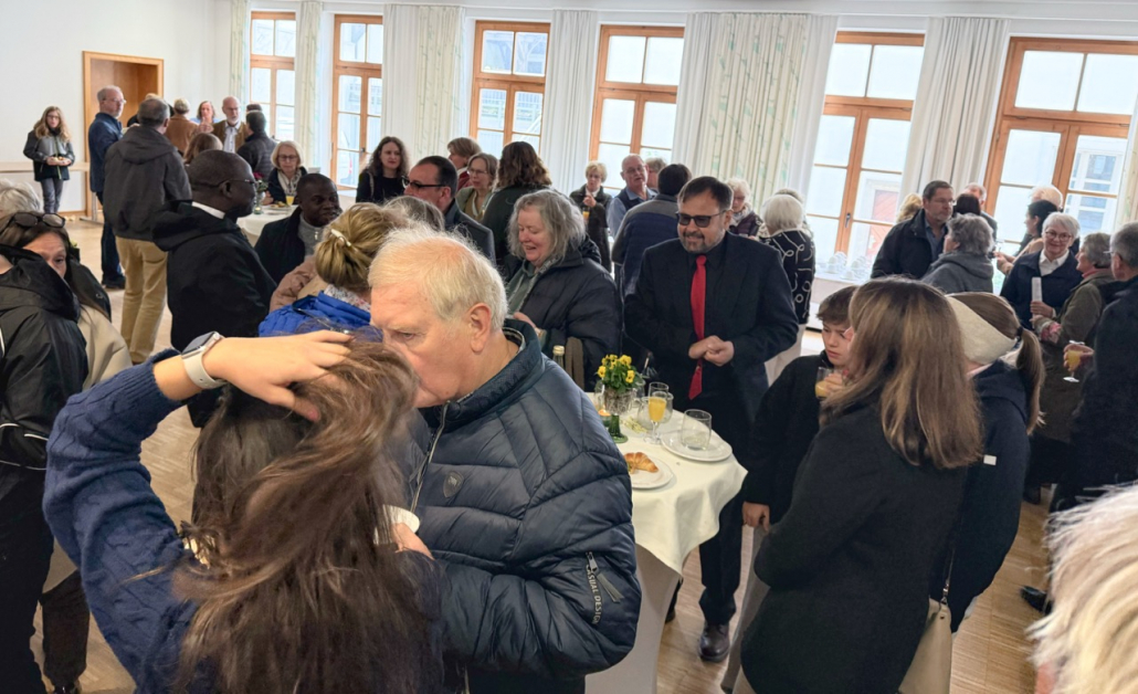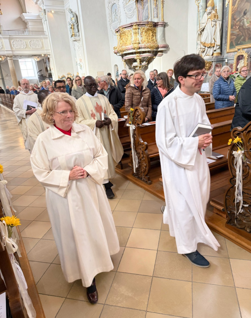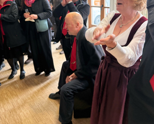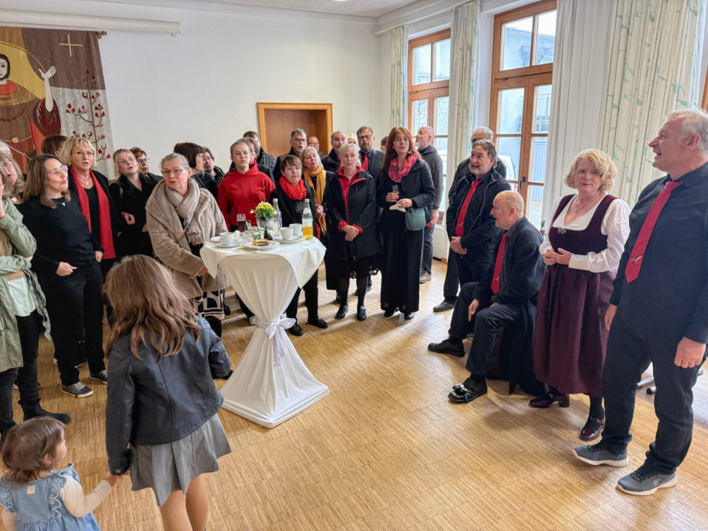 Nach dem Gottesdienst lud die Pfarrei alle Besucherinnen und Besucher des Gottesdienstes zu einem Stehempfang in den nahe gelegenen Pfarrsaal ein. Bei Häppchen und frischen Getränken war ausreichend Gelegenheit untereinander und mit Frau Probst ins Gespräch zu kommen.