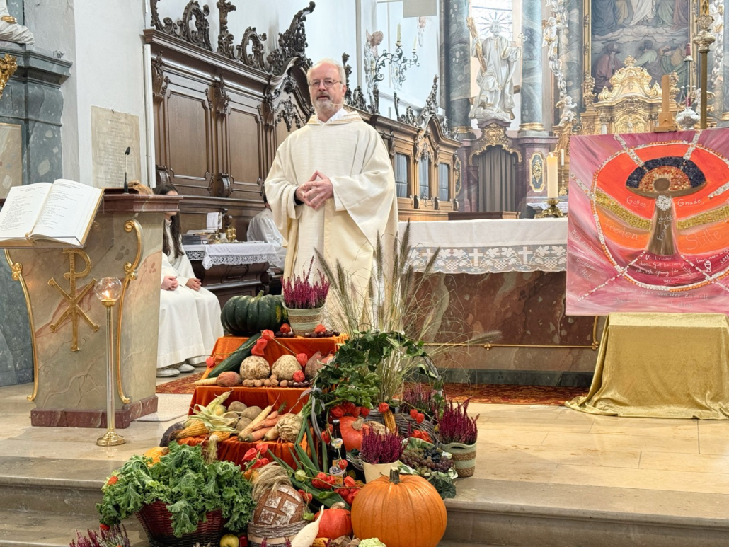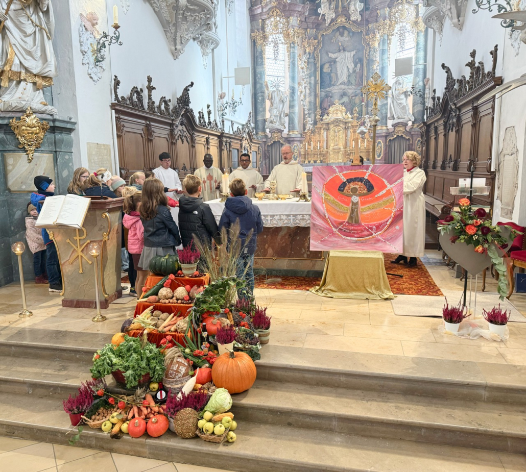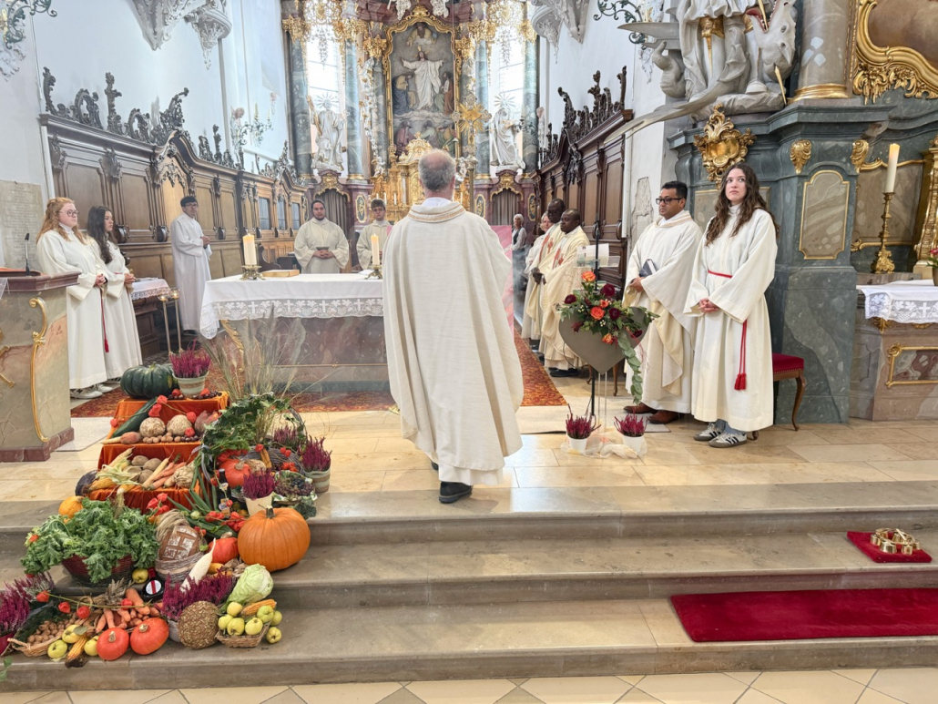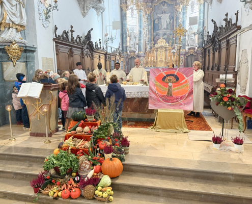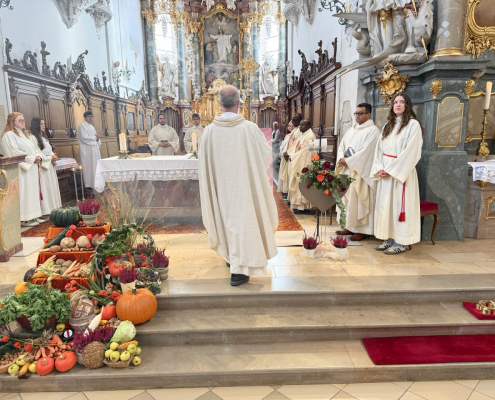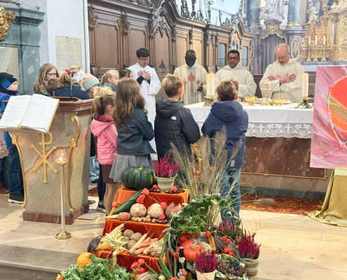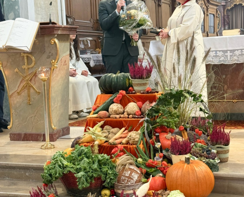 Ein Erntedankaltar entsteht nicht von alleine. Insofern gebührt allen Spenderinnen und Spendern sowie allen Helferinnen und Helfern sowie unserer Mesnerin Sabine unser großer Dank für die besondere Arbeit zum Dekorieren der Früchte. Liebe Ministranten, vielen Dank, dass ihr heute in so großer Abordnung an der Feier teilgenommen habt!