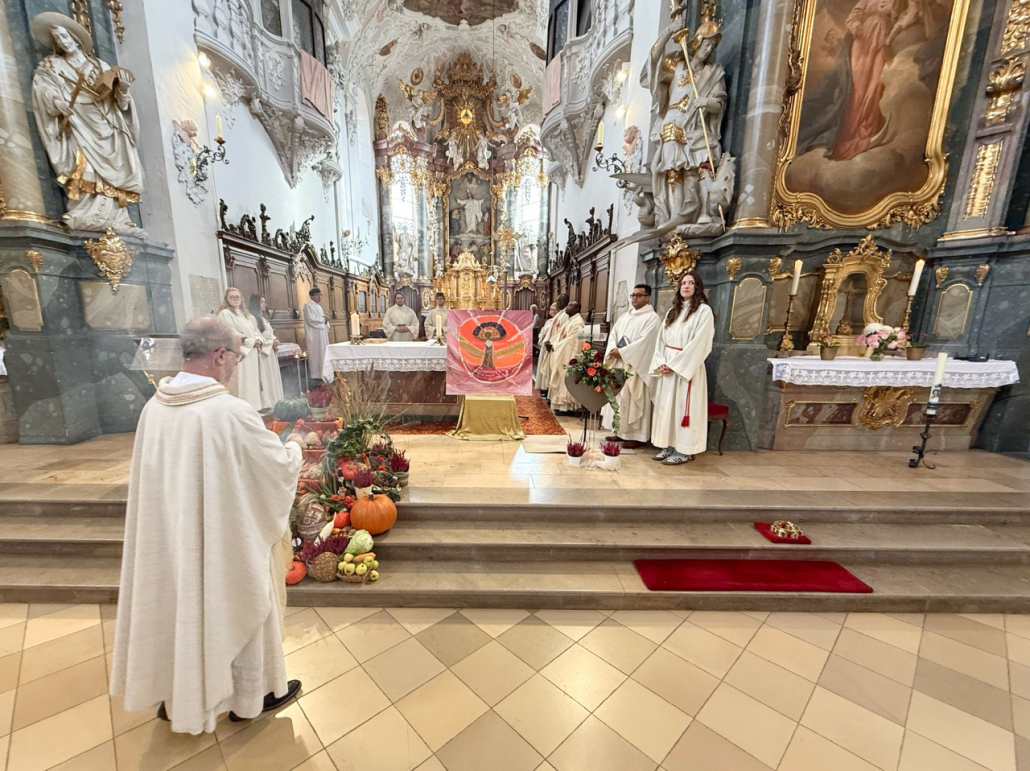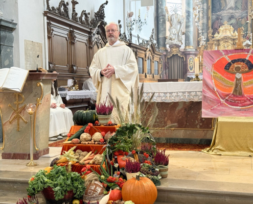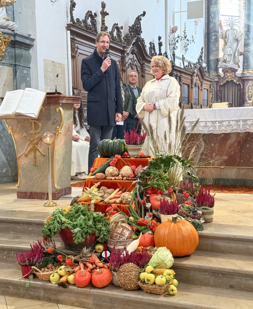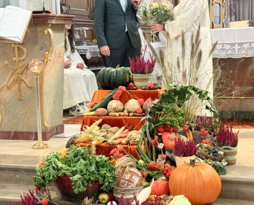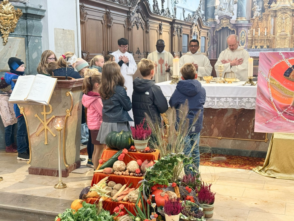 Ein Erntedankaltar entsteht nicht von alleine. Insofern gebührt allen Spenderinnen und Spendern sowie allen Helferinnen und Helfern sowie unserer Mesnerin Sabine unser großer Dank für die besondere Arbeit zum Dekorieren der Früchte. Liebe Ministranten, vielen Dank, dass ihr heute in so großer Abordnung an der Feier teilgenommen habt!