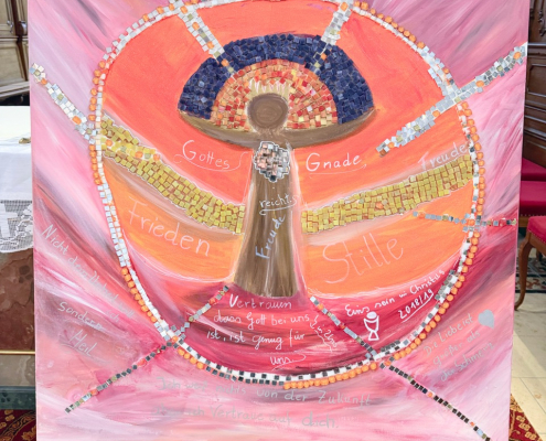 Musikalisch gestaltet wurde der heutige Gottesdienst vom Gospelchor O’Jessas aus Sattelbogen, der mit großer Stimmenanzahl diese schöne Feier bereichert hat. In schöner Abwechslung zum Gospelchor ließ Organist Hermann Seitz die Orgel beeindruckend erklingen. Lieber Chor, lieber Hermann, den Applaus am Ende des Gottesdienstes habt ihr euch redlich verdient. Vielen Dank liebe Gottesdienstbesucher für den extra Applaus am Ende des Gottesdienstes für das Postludium, das Orgelspiel zum Auszug aus der Kirche.