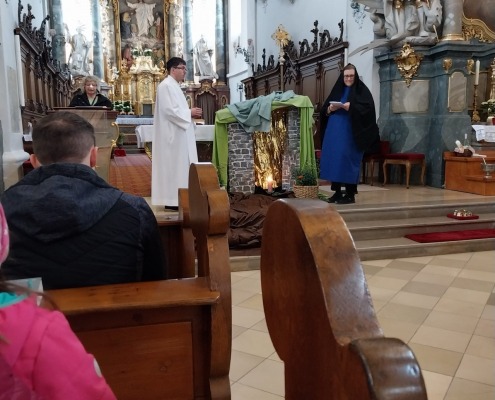 Danach folgte eine Katechese von unserer Gemeindereferentin. Nach den Fürbitten, dem gemeinsam gesprochenen Vaterunser und dem Friedensgruß folgte die Segnung der Speisen. Mit dem Schlussgebet und dem Schlusslied endete die schöne Kinderosternacht.