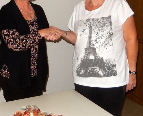 Gabriele Dahlmann dankte Elke Lesinski mit einem kleinen Geschenk und der herzliche Applaus war das Sahnehäubchen obendrauf.