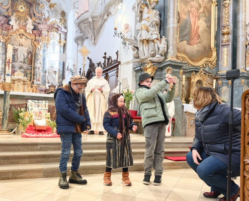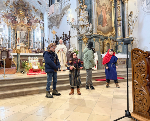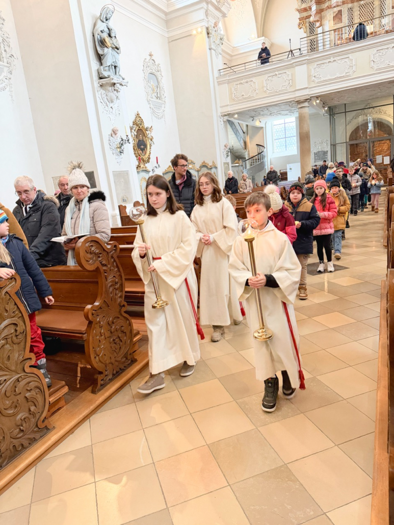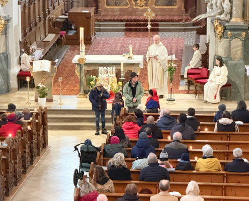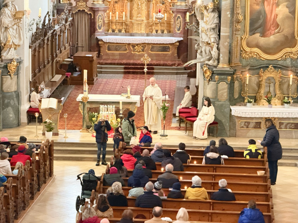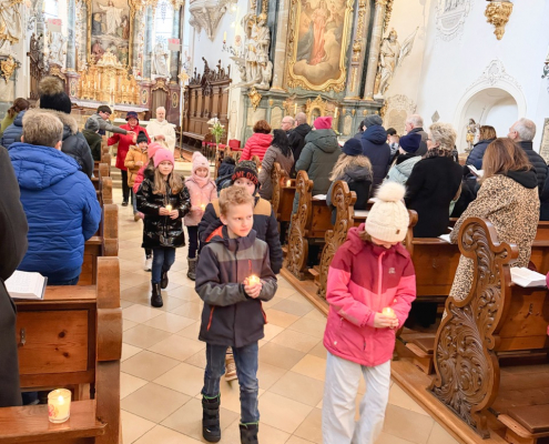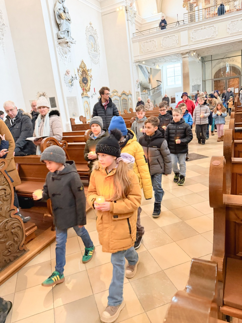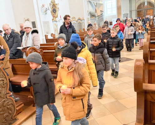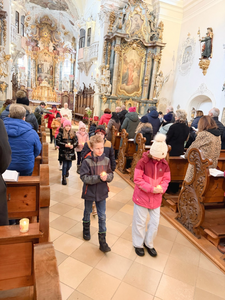 Eine beeindruckende Lichterprozession 🕯️ gab es zu bestaunen, als sich alle Kinder anlässlich des Festes Maria Lichtmess mit ihren brennenden Kerzen auf dem Weg durch die Kirche machten. In mehreren Schleifen verbreiteten sich die Lichter durch unsere große Stadtpfarrkirche.