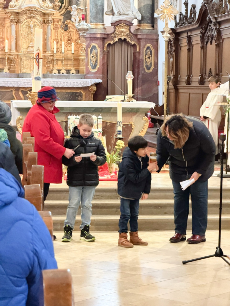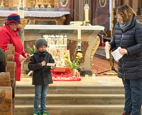 Auch in den Texten des Evangeliums und den Fürbitten waren die Kinder, teil szenisch, in die Feier der Liturgie eingebunden. Liebe mitwirkende Kinder: Ihr habt das toll gemacht! Unser großer Respekt vor eurem Mut und eurer Leistung!