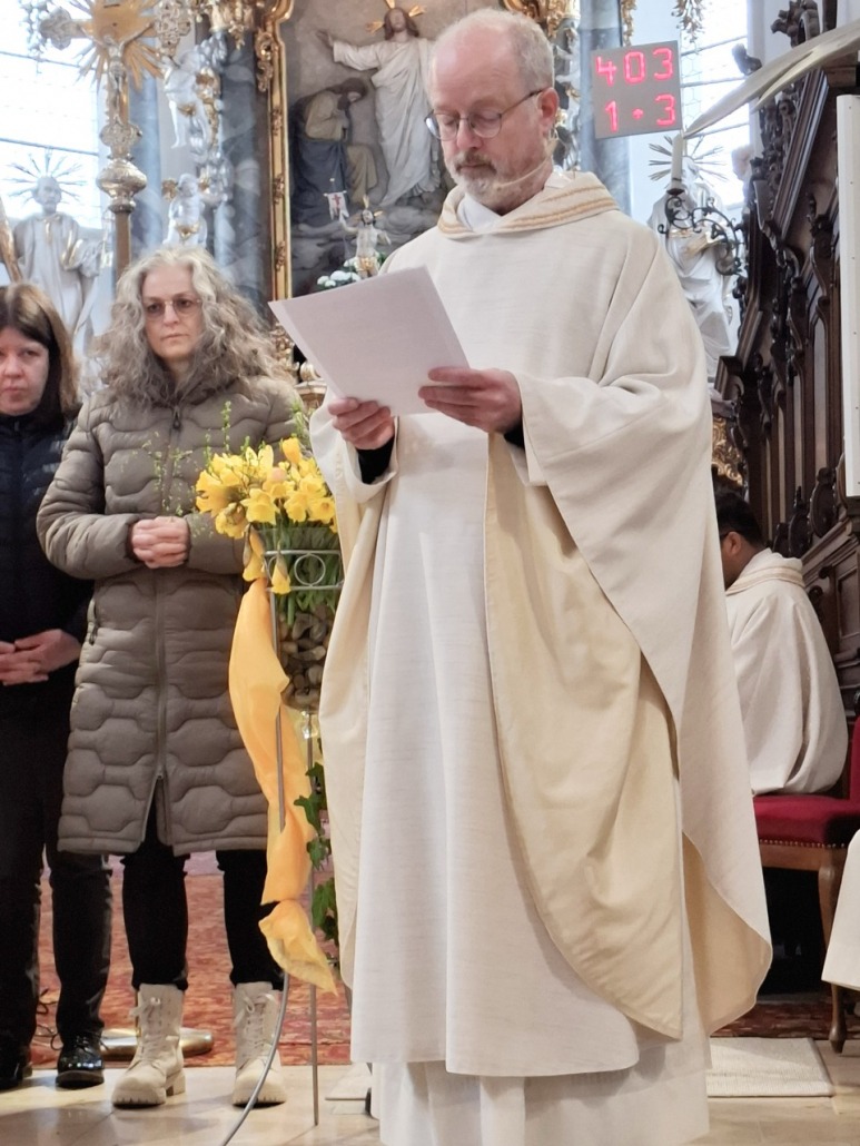 Der Weiße Sonntag ist damit seit langer Zeit ein bedeutungsvoller Tag für den Abschluss und zugleich für den Beginn eines neuen Zeitabschnitts. Insofern war es naheliegend, dass sich Pfarrer Pater Bartsch an diesem Tag über die Einsetzung des neuen Pfarrgemeinderats freuen durfte. Im Rahmen seiner Predigt wies er auf die Wichtigkeit und die Bedeutung dieses Gremiums für die Lebendigkeit des Glaubens in der Pfarrei hin und bat zugleich alle Besucherinnen und Besucher des Gottesdienstes um ihr Gebet.