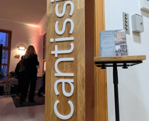 Anschließend waren alle Besucher zum Sektempfang in das Pfarrheim eingeladen, um gemeinsam auf die Liebe anzustoßen. Zu den Klängen des Chores cantissima, der auch den Sektempfang mit einigen Liedern umrahmte, entwickelten sich rege Gespräche in schöner Atmosphäre.