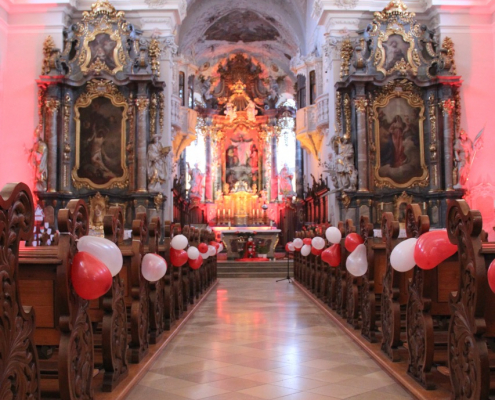 Vielen herzlichen Dank an alle, die diesen wundervollen Tag organisiert, vorbereitet und unterstützt haben. Vielen lieben Dank an unsere Mesnerin Sabine, die für alle Ideen ein offenes Ohr hatte und auch die Kirche mit passenden Blumen und Dekoration geschmückt hat. Herzlichen Dank lieber Pfarrer für ihre Bereitschaft die Idee aufzugreifen und mit der Paarsegnung auch besondere Akzente zu setzen. Einen großen Dank an den Chor cantissima, der mit eindrucksvoller Musik einen schönen Rahmen gesetzt hat. Herzlichen Dank an alle Helferinnen und Helfer, die sich im Pfarrheim um die Bewirtung gesorgt haben. Vergelts Gott euch allen!