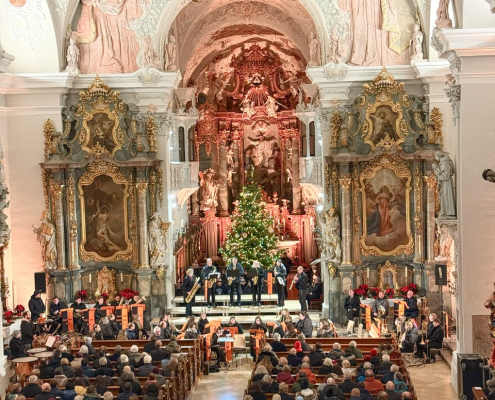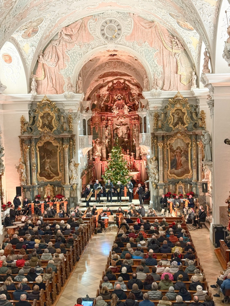 Es war ein atemberaubender Anblick beim Weihnachtskonzert der Stadtkapelle Kolpingmusik Cham in unserer Stadtpfarrkirche St. Jakob in Cham. Die große Stadtpfarrkirche war bis auf den letzten Platz gefüllt, alle noch aufgestellten Stühle waren besetzt und die Stimmung war voller Erwartungen.