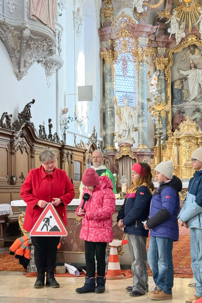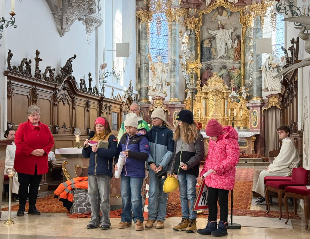 Der Sonnenschein am heutigen Sonntag passte zunächst nicht wirklich zu der Baustellensituation, die vor dem Altar zu sehen war. Absperrhütchen, Absperrbänder, Werkzeug und Baustoffe waren vorne aufgebaut und ließen sicherlich die heutigen Gottesdienstbesucherinnen und -besucher rätseln, was da wohl kommen möge.