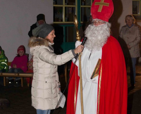 Zahlreiche Kinder hatten sich mit ihren Eltern im Garten des Altenmarkter Kindergartens zur Nikolausfeier eingefunden. Zum Glück ließ der Heilige Mann nicht lange auf sich warten. Die Kinder begrüßten ihn mit dem Lied „Heute ist ein Fest in unsrem Haus, heute kommt zu uns der Nikolaus“ und erzählten im Schattenspiel „Nikolaus und die drei Säcke“ eine Legende von der großen Güte des Bischofs: Er beschenkte eine arme Familie in drei aufeinanderfolgenden Nächten mit drei Säcken voll Essen, Kleidung und schließlich Schuhen.