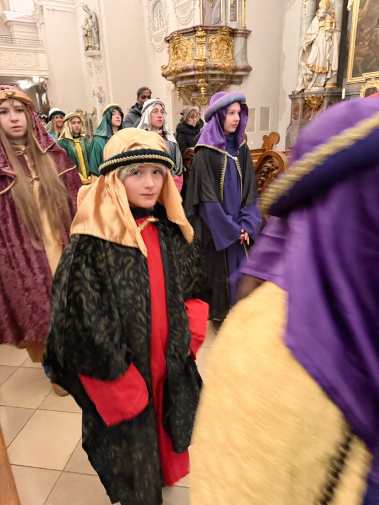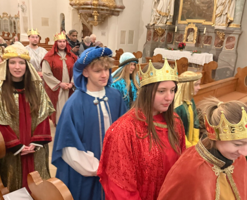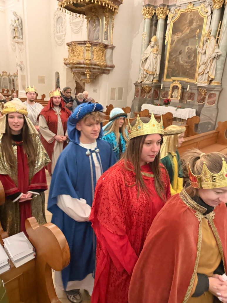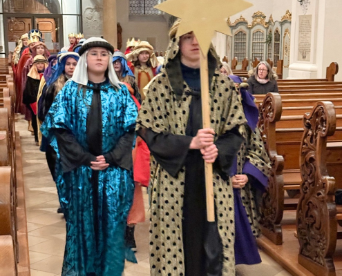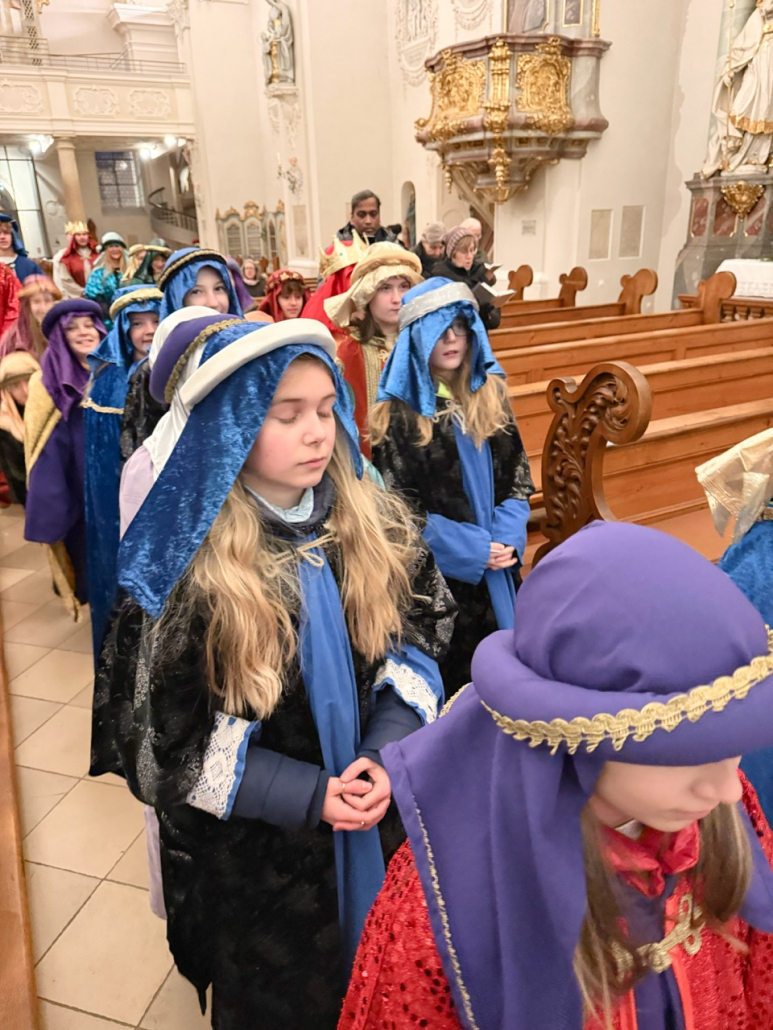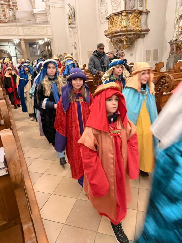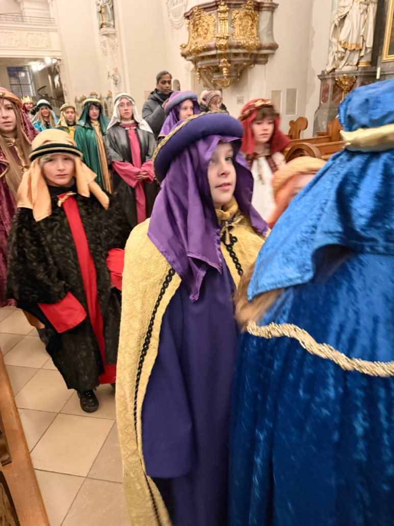 Heute am Festtag der Erscheinung des Herrn, dem Dreikönigstag, war unsere Stadtpfarrkirche St. Jakob bunt anzuschauen. Zu Besuch war königlicher Besuch in bunten Gewändern, schönen Kopfbedeckungen und glitzernden Kronen und Umhängen. Unsere Sternsinger umrahmten und gestalteten den Festgottesdienst in königlicher Würde.
