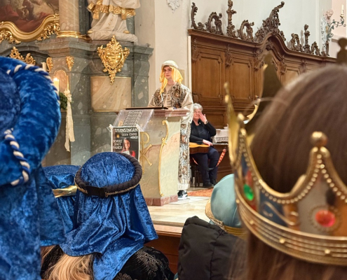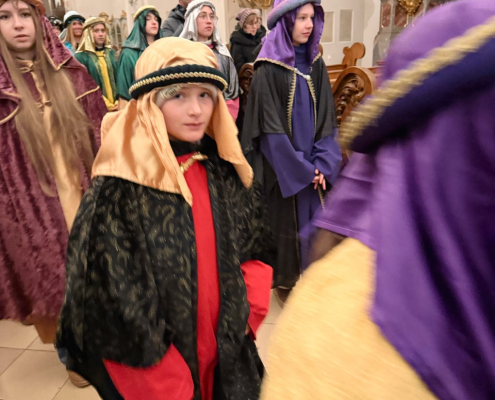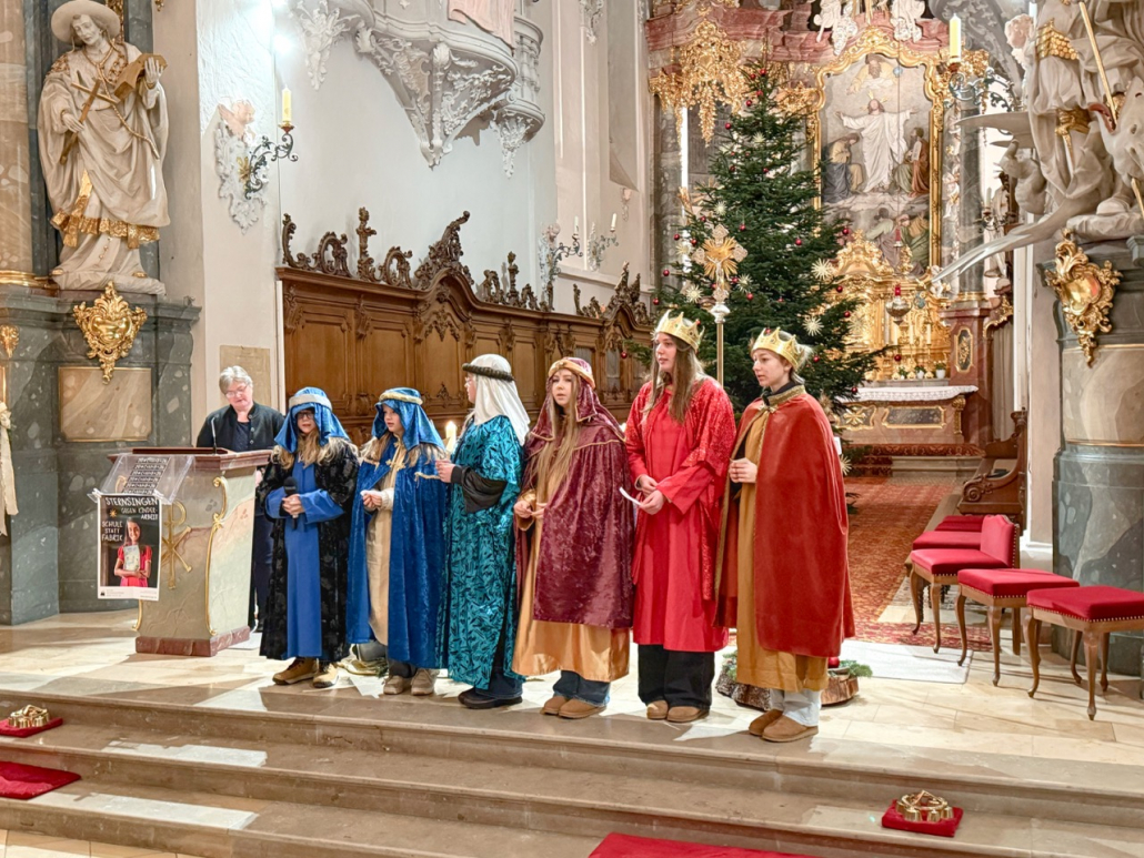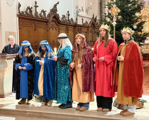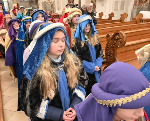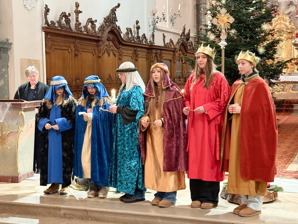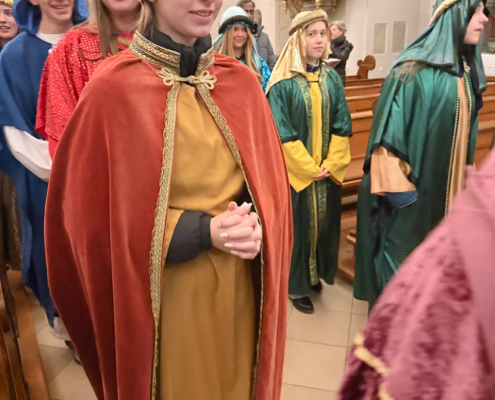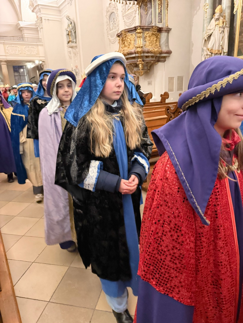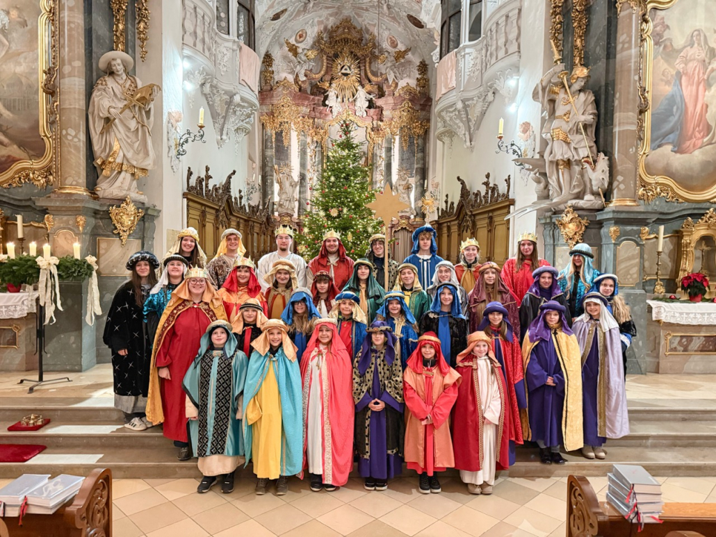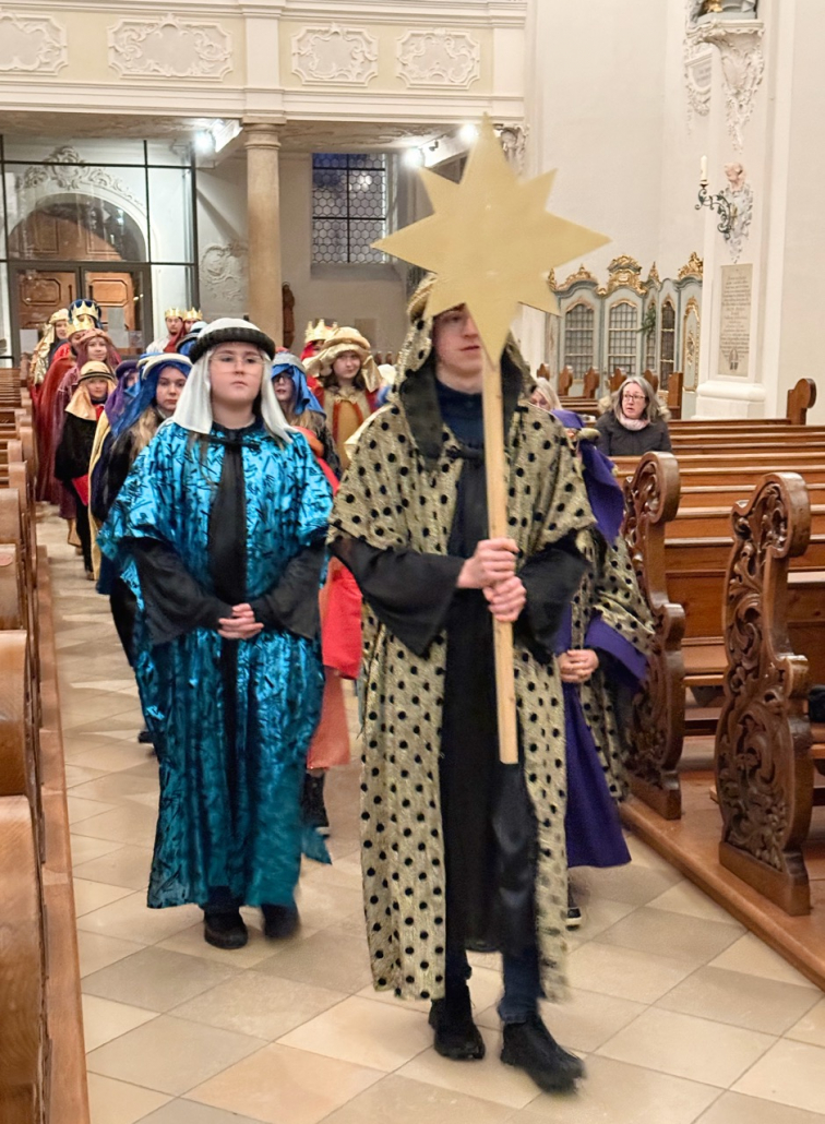 Heute am Festtag der Erscheinung des Herrn, dem Dreikönigstag, war unsere Stadtpfarrkirche St. Jakob bunt anzuschauen. Zu Besuch war königlicher Besuch in bunten Gewändern, schönen Kopfbedeckungen und glitzernden Kronen und Umhängen. Unsere Sternsinger umrahmten und gestalteten den Festgottesdienst in königlicher Würde.
