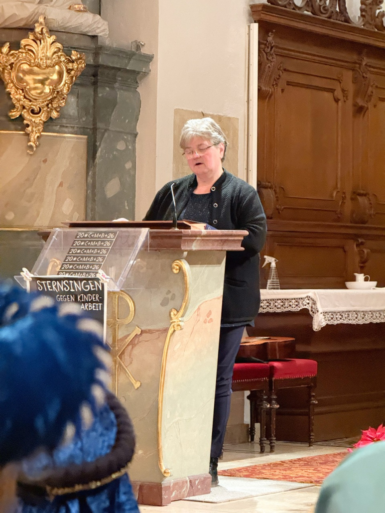In seiner Predigt dankte Pfarrer Pater Jens Bartsch allen Ministranten und Firmkindern, die auch dieses Jahr als Sternsinger die Frohe Botschaft und den Segen Gottes in die Häuser gebracht haben. Er dankte auch allen Eltern und Helfern der Sternsinger sowie allen Unterstützern, die unsere Sternsinger wohlwollend aufgenommen haben und mit einer Spende an das Kinderhilfswerk bedacht haben. Liebe Sternsinger, vielen herzlichen Dank für euren großartigen Dienst in der guten Sache! Ihr habt keine Mühe und keine eisigen Temperaturen gescheut, um auch dieses Jahr wieder ein tolles Bild abzugeben und in euren Weihnachtsferien die Geschichte der Geburt von Jesus Christus zu verbreiten. Vergelts Gott euch allen!