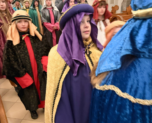 Das Krippenspiel an Heilig Abend ist bereits Tradition. So waren auch dieses Jahr wieder alle Familien, Eltern, Großeltern und natürlich besonders die Kinder unserer Pfarrei eingeladen, zu dieser schönen weihnachtlichen Feier zu kommen, um die Geschichte der Geburt unseres Herrn Jesus Christus nachzuempfinden. Viele Kinder haben sich als Mitwirkende bereits in einigen Probenterminen vorher viel Mühe gegeben, den Text und die Handlung der Weihnachtsgeschichte zu lernen und zu spielen. Vielen Dank liebe Kinder für diese großartige Leistung und euren zusätzlichen Anstrengungen neben der Schule und dem Kindergarten! Vielen Dank auch liebe Eltern der Kinder, dass ihr dies so toll unterstützt habt! Ohne euch alle, könnte dies nicht gelingen.
