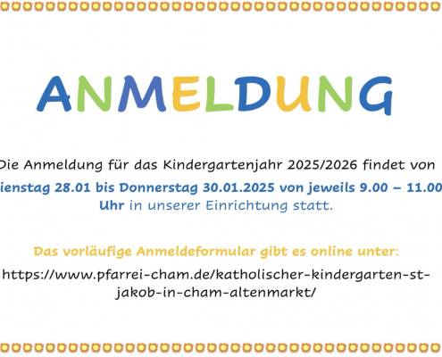 Kinder sind eine kostbare Gabe. Wir sollen sie schätzen und für sie sorgen. Der Einsatz für ihre Erziehung und Bildung, für ihr Heranreifen und soziale Einbindung ist eine wichtige Aufgabe für die Gesellschaft. Auch der Pfarrgemeinde ist es ein dringliches Anliegen, sich für die Förderung von Kindern zu engagieren. Aus diesem Antrieb heraus unterhält die Pfarrei Cham – St. Jakob in Altenmarkt den Kindergarten.