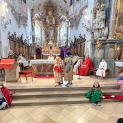 Vielen Dank an alle Helferinnen und Helfer, die zum Gelingen des Gottesdienstes beigetragen haben. Vielen Dank den Ministranten, die heute wieder zahlreich teilgenommen und so einen würdigen Rahmen geschaffen haben. Herzlichen Dank liebe Gemeindereferentin Michaela Probst für die Anleitung des Passionsspiels, an unsere Mesnerin Sabine Schardt für das thematisch passende Schmücken der Kirche und unserem Kantor für die musikalische Begleitung. Unser großer Dank gilt aber euch, liebe Kinder: Ihr habt mit bewunderswerten Elan und Mut im Passionsspiel und in den Fürbitten die historischen Ereignisse aufleben lassen, wunderbar vorgelesen, Texte auswendig gelernt und euch heute ganz toll eingebracht!