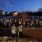 Das Vorbereitungsteam lud im Anschluss an den Kreuzweg zum Beisammensein bei Tee und Brezen ins Pfarrheim ein.