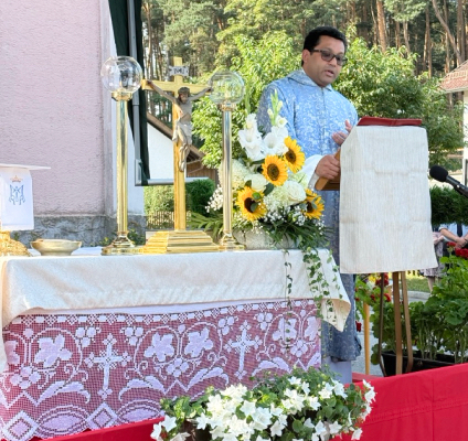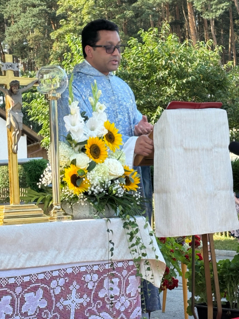 Pater Jim begrüßte alle Gottesdienstbesucherinnen und Besucher zum Patrozinium in Mariä Schnee und wies in seiner Predigt auf das Leben der besonderen Frau Maria hin. Maria vertraute Zeit ihres Lebens auf die Hilfe Gottes und durfte diese auch immer wieder erleben. Sie darf uns damit ein Vorbild auch in unserem Leben sein.