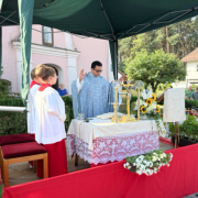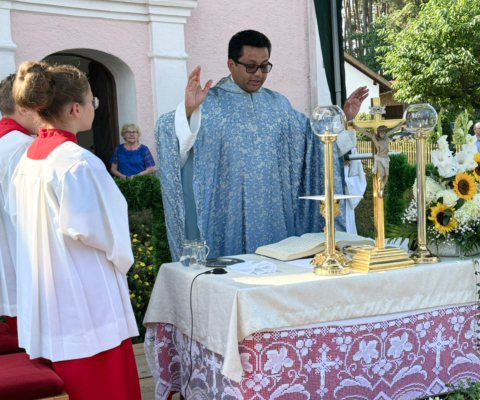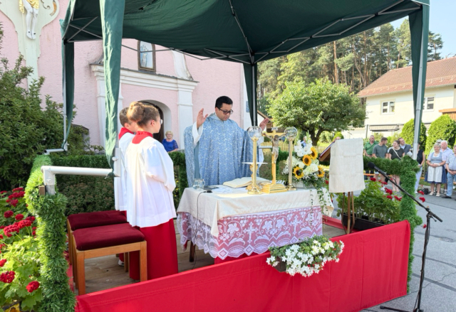 Zum Ende des Gottesdienstes bedankte sich Pater Jim bei allen, die zum Gelingen des Gottesdienstes beigetragen haben. Begonnen beim Obst- und Gartenbauverein mit den Kräuterbuschen, über die Gestaltung des Altares, dem Ministrantendienst, der Feuerwehr Schachendorf und vielen weiteren Helferinnen und Helfer waren mit oft auch unsichtbaren Händen beteiligt. Herzlichen Dank an euch alle für diesen Dienst!