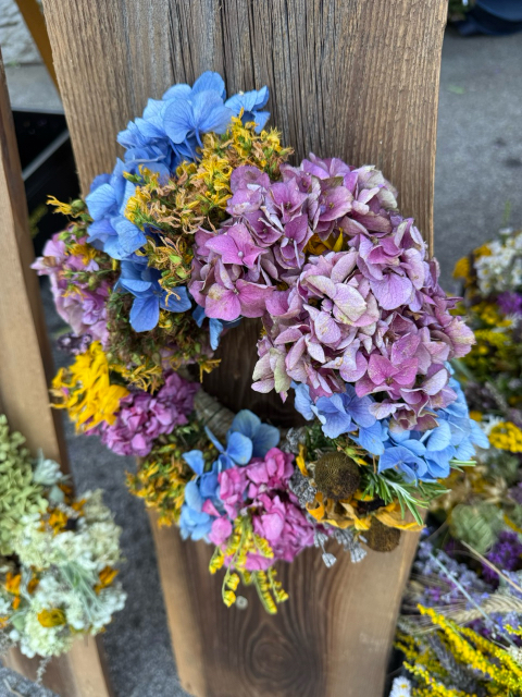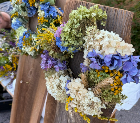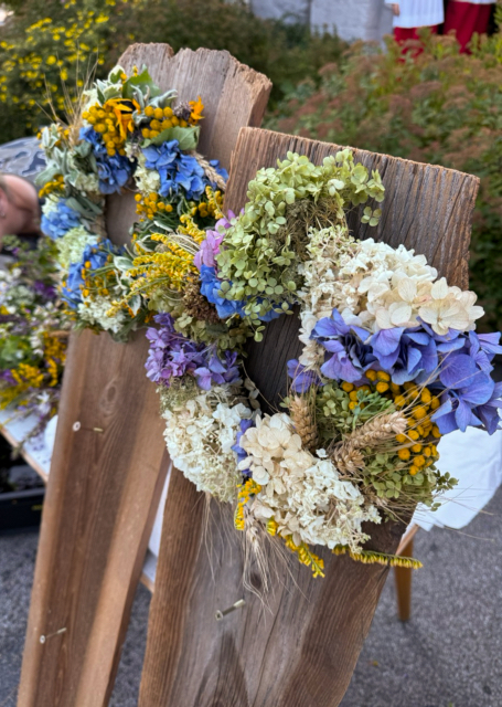 Vor dem Schlusssegen durfte Pater Jim noch die vom OGV verkauften Kräuterbuschen mit Weihwasser segnen. Lieber Jim, es war eine wirklich gute Idee eine große Runde durch die Reihen der Besucherinnen und Besucher zu gehen. Das Weihwasser tat heute einen doppelten Dienst: Es spendete Segen und Erfrischung!